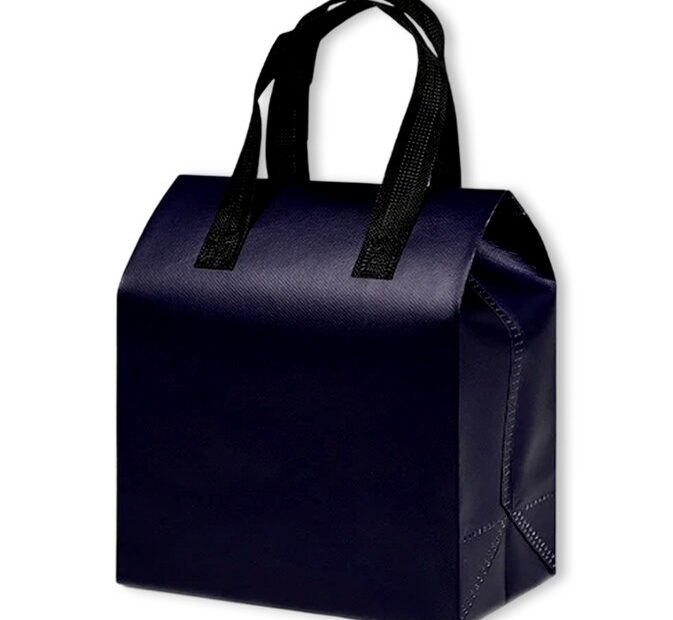 일회용 보온보냉백으로 손잡이 디자인. 400장 단위로 판매하며, 색상은 네이비와 퍼플이 있음.